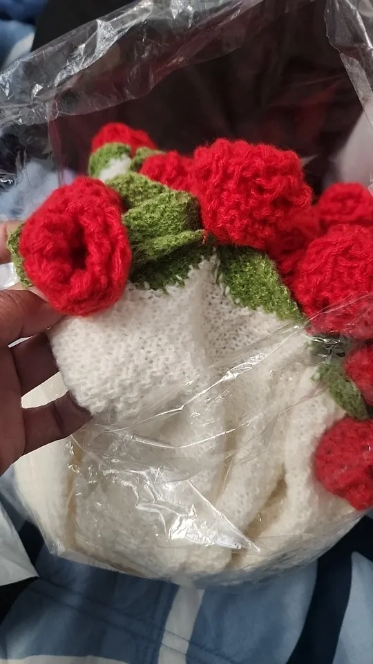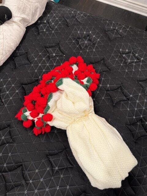 Our dual-craft design blends hand-knitting with lifelike crochet flowers for a bouquet that’s both cozy and breathtaking.